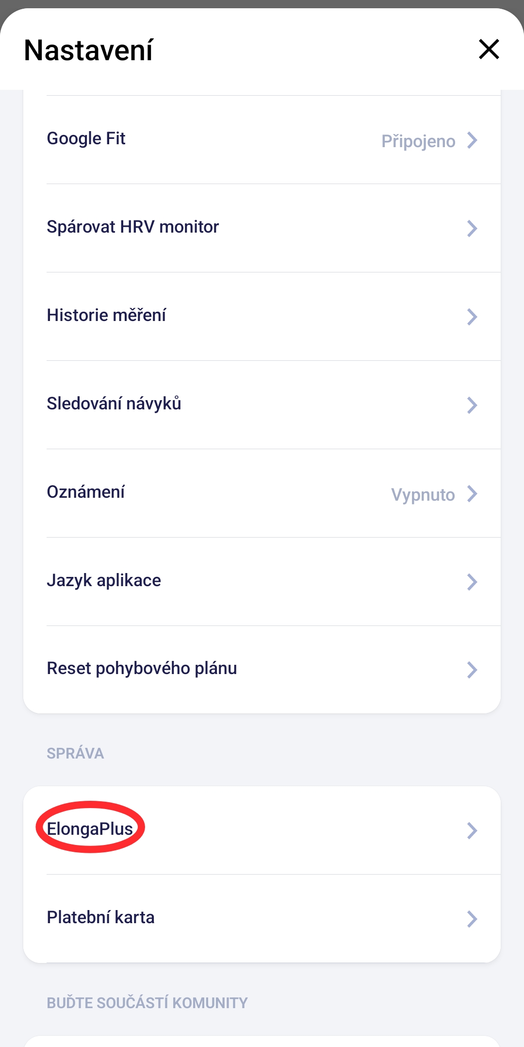 Veškerou správu členství ElongaPlus můžete provést přímo v aplikaci Elonga.