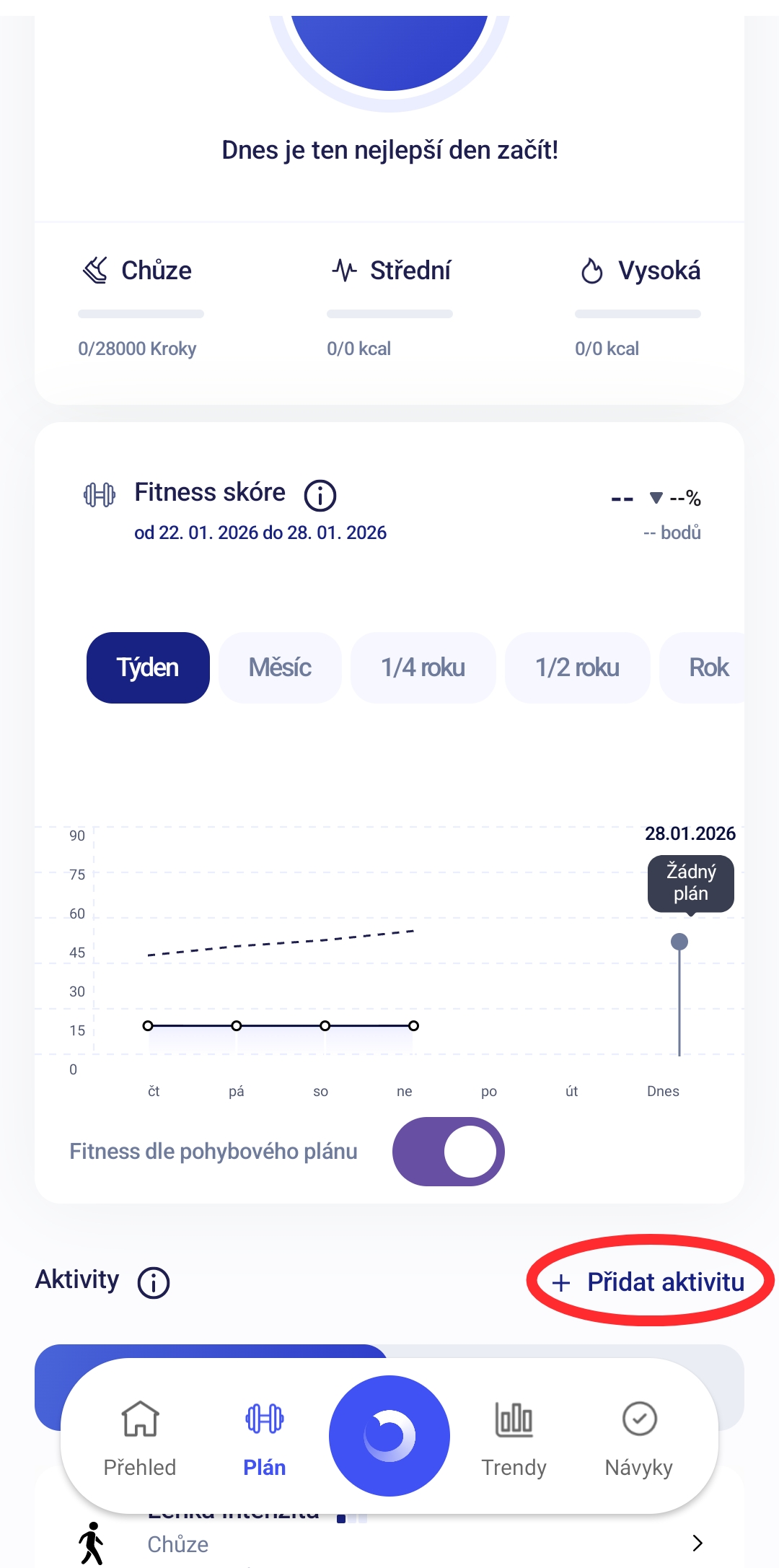 Synchronizace je dobrovolná a lze ji kdykoliv vypnout. Plán funguje naplno i bez propojení s jinými aplikacemi. Ruční zadávání dává úplnou kontrolu nad evidencí aktivit. HRV výsledky nejsou synchronizací nijak ovlivněny.