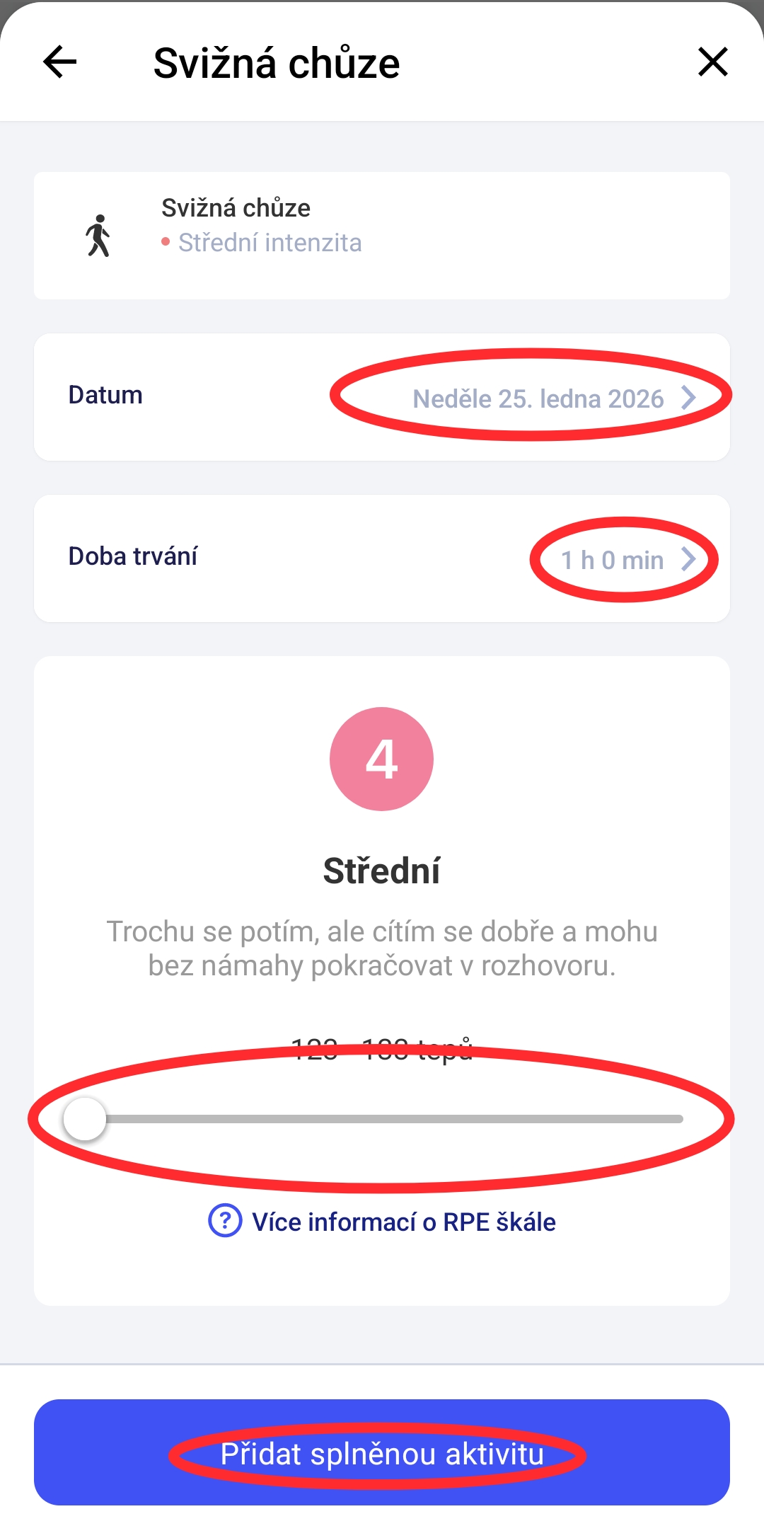 vybrat intenzitu (lehká / střední / vysoká),