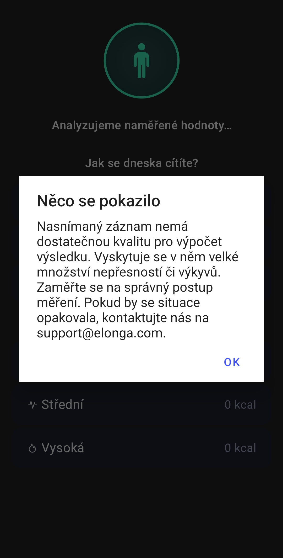 Pokud Vám aplikace Elonga zobrazuje chybné nebo neúplné měření, zpravidla jde o problém s kvalitou zaznamenaného signálu. Aby bylo možné správně vyhodnotit aktivitu autonomního nervového systému (HRV), snímač potřebuje dostatek přesných dat bez výrazných výkyvů nebo artefaktů.