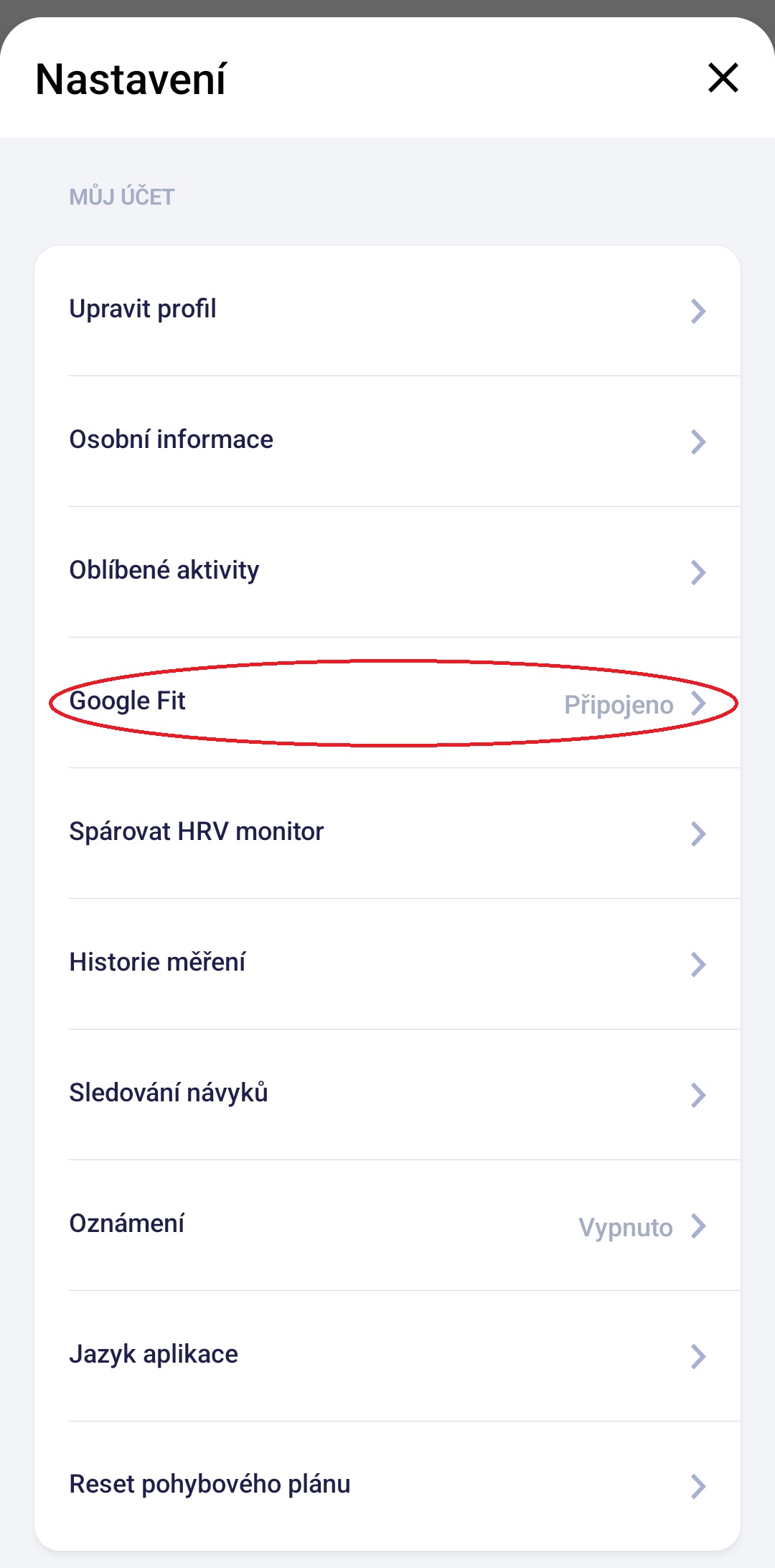 propojení mezi Google Fit a Elonga je přerušené nebo neúplné,