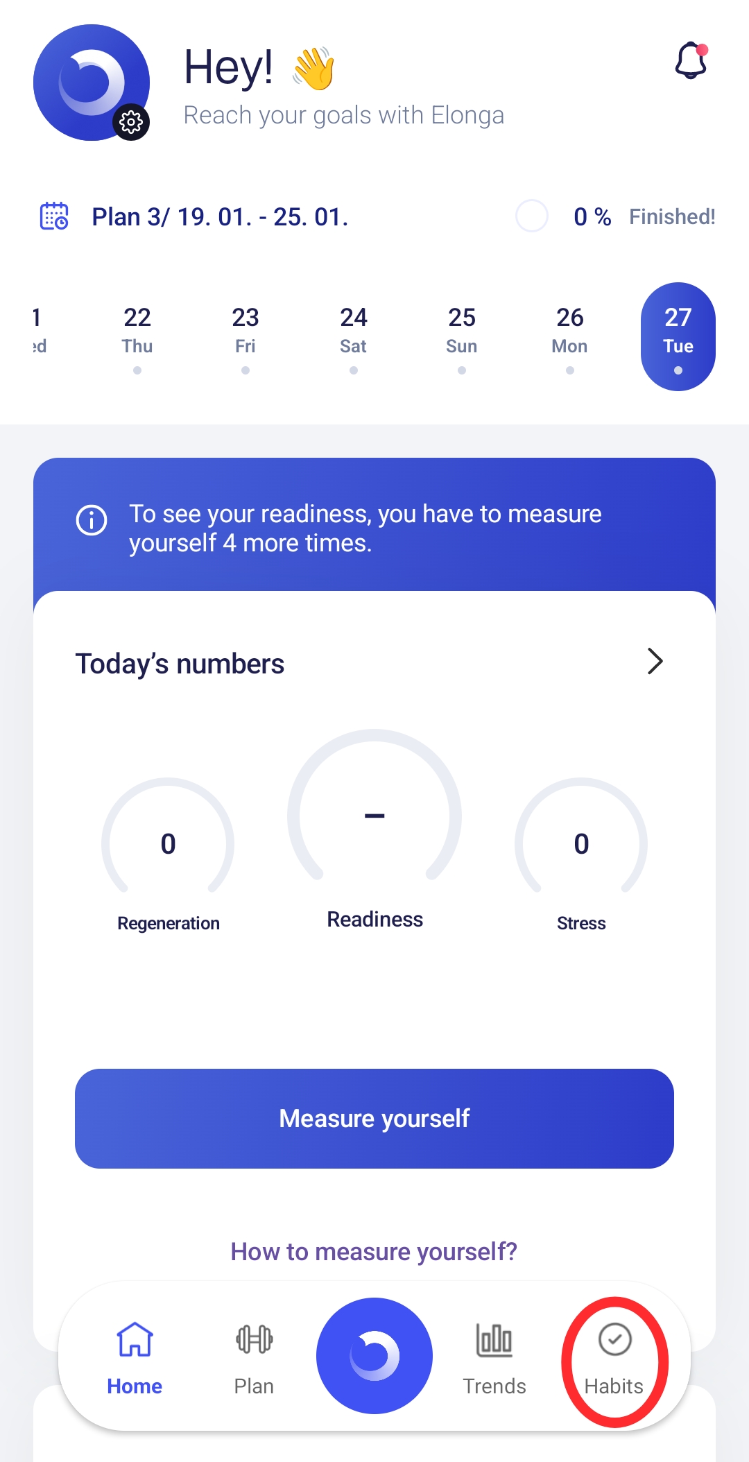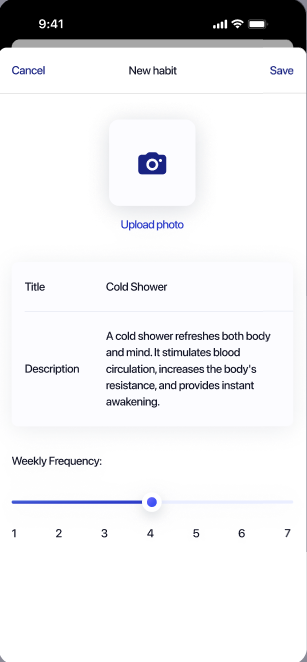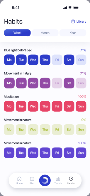 Habits are one of the key features of Elonga. They help you understand how your everyday behavior affects stress, recovery, and overall vitality. By tracking them consistently, you gain clarity about what you truly do for your health and which actions have the biggest impact.