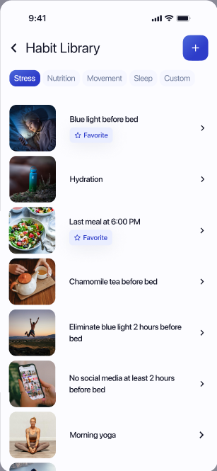 You can also mark library habits as favorites. These appear immediately after your morning measurement for quick, frictionless logging.