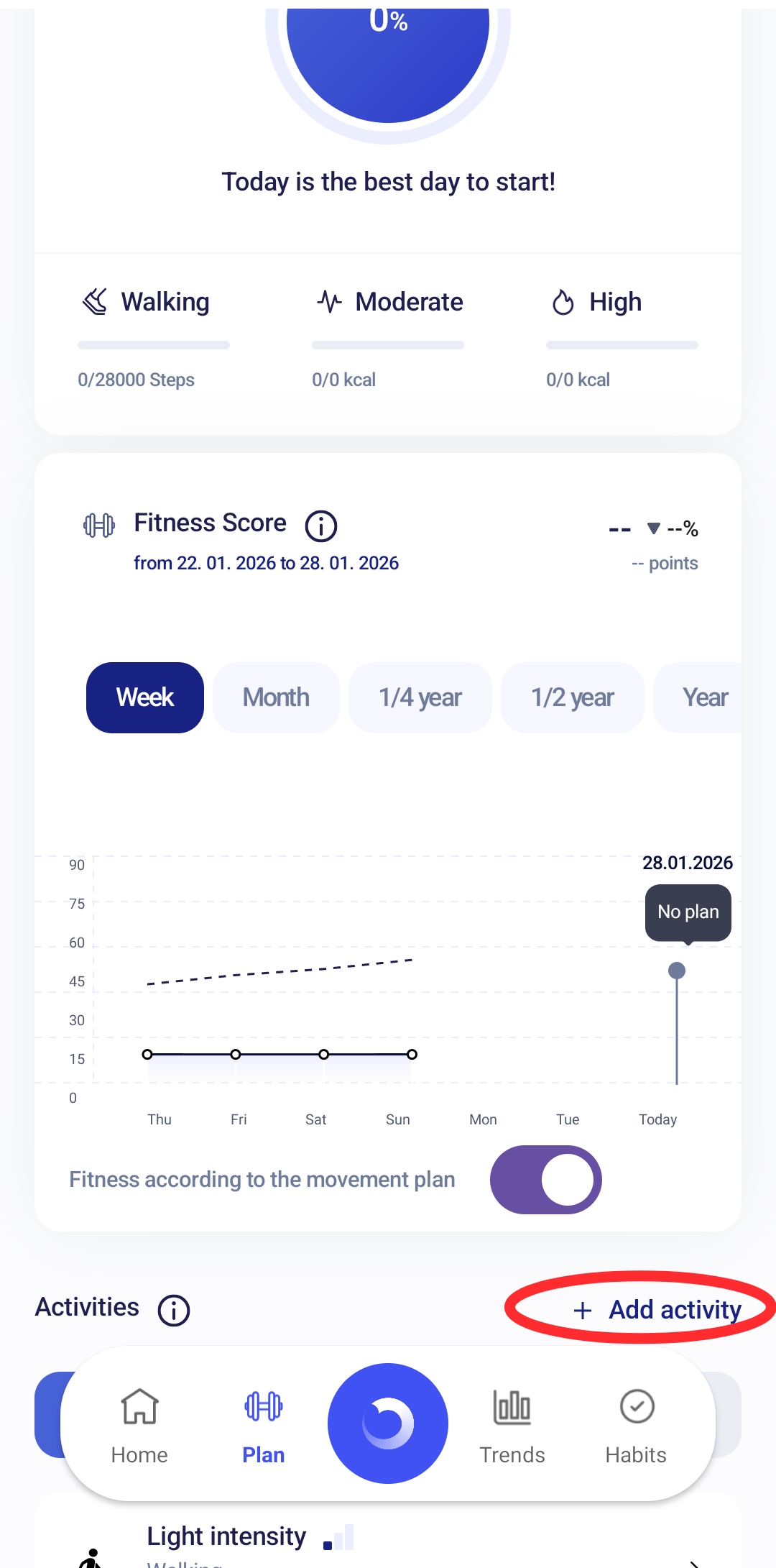 Synchronization is optional and can be disabled anytime. You can fully use the Plan without connecting to other apps. Manual entry gives you complete control over activity tracking. HRV measurement results are not affected by synchronization in any way.